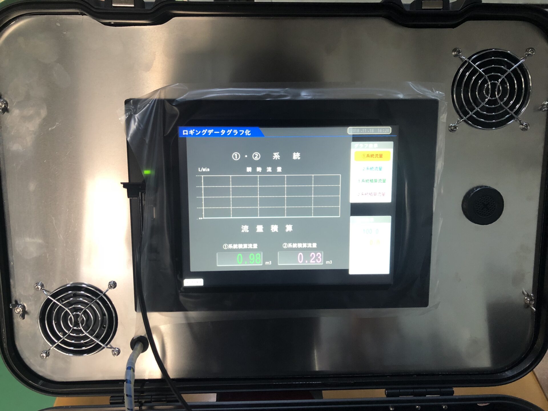PLC・タッチパネルモニター、デモ機を使用しての流量・温度測定
