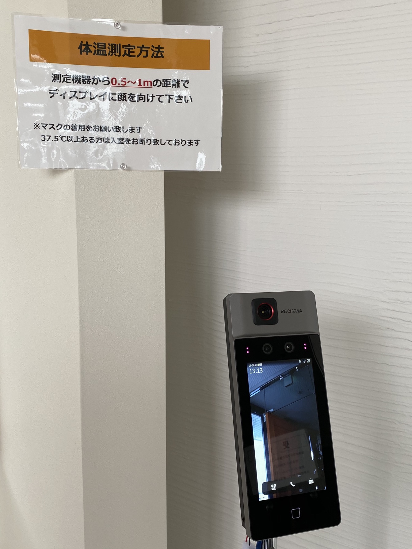 このような中、8月より、顔認証体温検知器(サーマルカメラ)をお客様用玄関と、社員専用通用口に設置し、検温とマスク着用のチェックを行っております。ご来社されましたお客様にはお手数ではございますが、ご理解とご協力をお願いします。