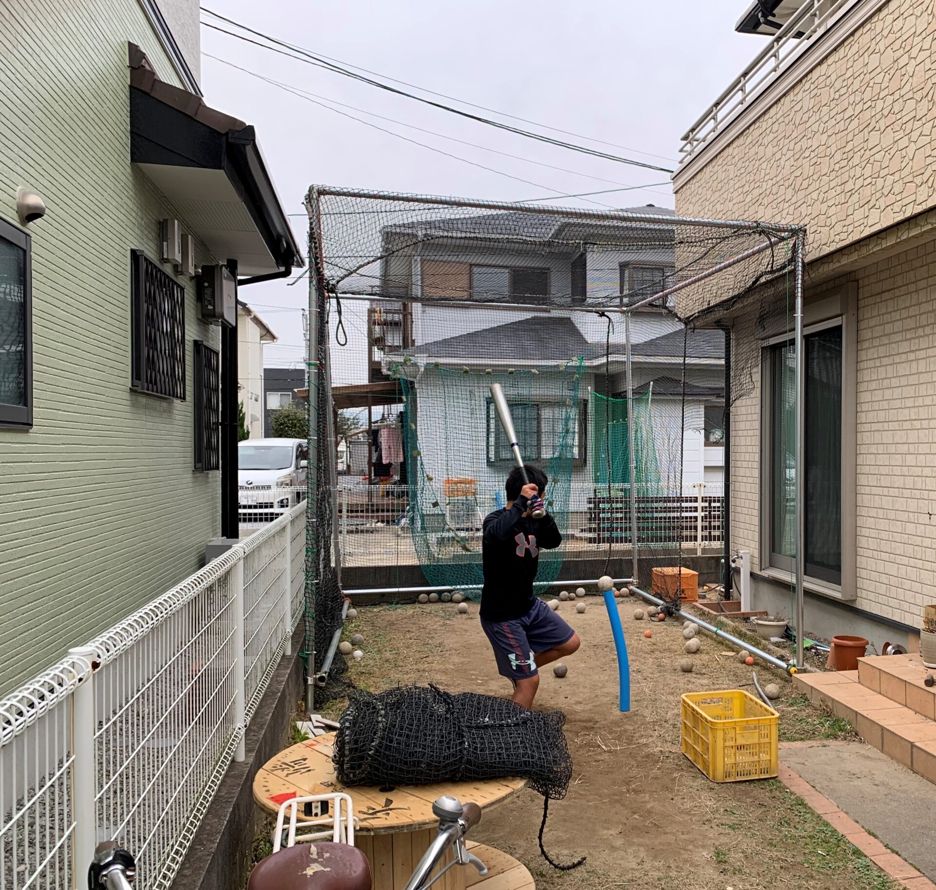 またお隣では子供の為にバッティング練習用の大きなネットを制作しました。(写真②)
