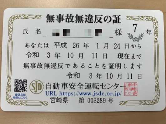 気になって調べたところ、私は7年間無事故無違反でした!