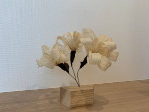 もう一つの写真は体験学習で飫肥杉を使った花の飾りになります。形を変えて色んな魅力を与えてくれるのも木の特徴ですね。