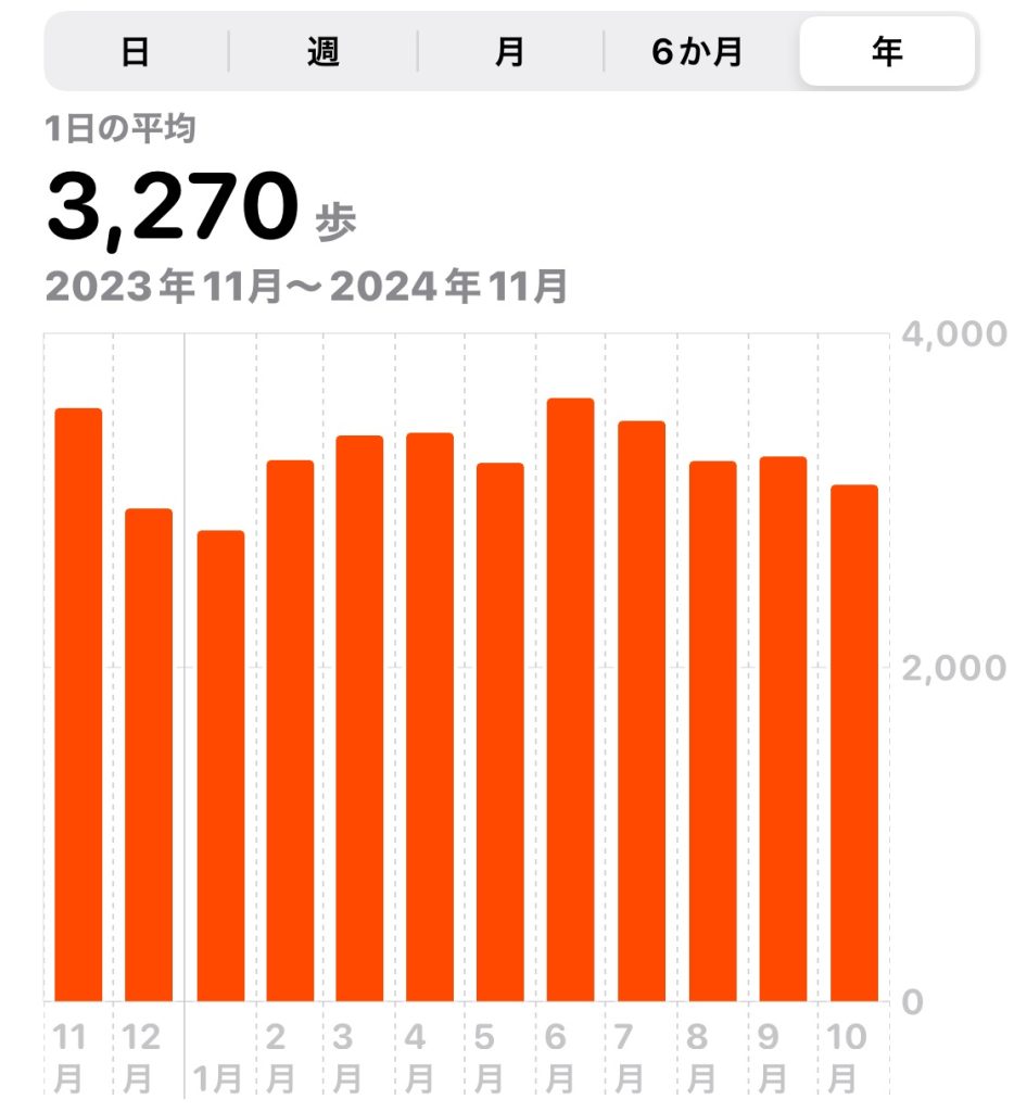 携帯で歩数を測れるのですが、ある日ふと見た時に