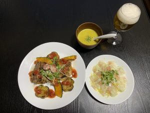 しかし、「やっぱりメインがないと寂しいな」と思い始め、さらに汁物も欲しくなってしまい、欲張った結果、以下の献立となりました。