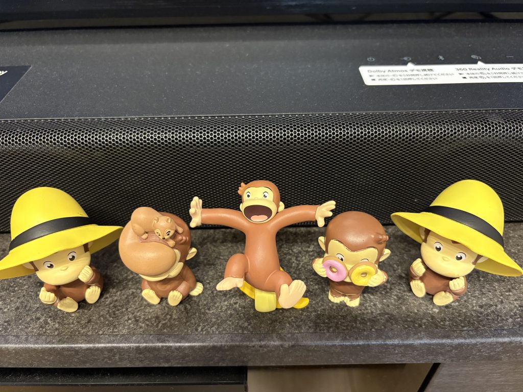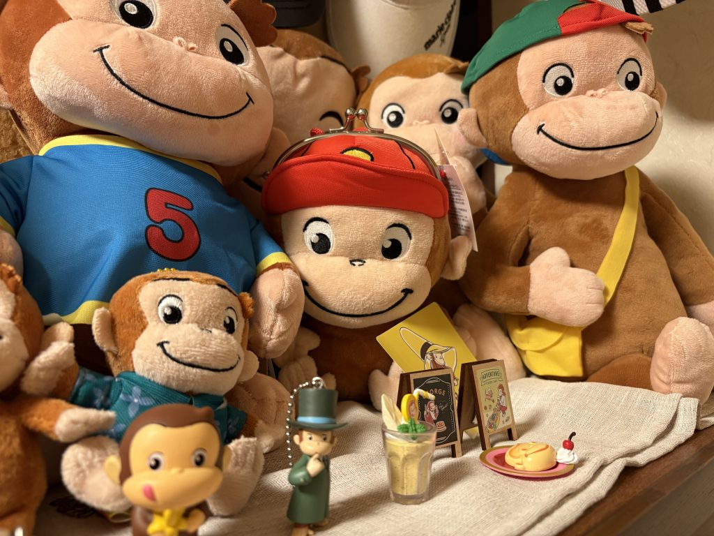 そして、もう一つは「おさるのジョージ」。 こちらは娘が大好きで、ぬいぐるみや文房具など、いろいろなグッズがどんどん増えていき、今ではすっかりコレクションのようになっています。