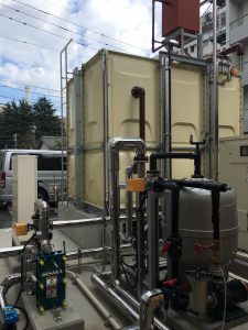 今回、他のビジネスホテルでも温泉を利用した大浴場を有したホテルが増えてきている事から、宿泊のお客様に少しでも寛いで宿泊していただこうとの趣旨で設備を計画されました。温泉は購入しないといけない条件から、浄化・昇温・維持・消毒殺菌を必要とする設備を施工致しました。