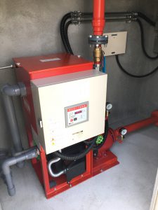 施行令順守が義務化となった今その検討が急がれており、弊社では機種選定から官庁申請書類の作成、申請のお手伝いができる体制を揃えています。又、スプリンクラー設備用ポンプユニットに限らず他の消火ポンプや消火機器類の販売、設置工事も行っております。