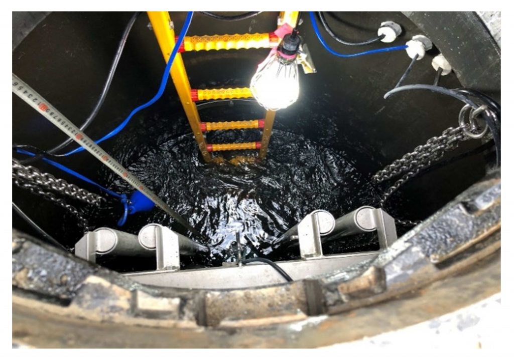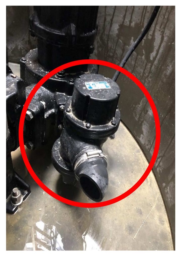 今回設置させて頂いた製品は、ジェットバルブ機能付きのマンホールポンプになります。こちらの製品はポンプの吐出水を利用し、ジェット水流を発生させ槽内の汚泥堆積、スカムの付着を抑制します。