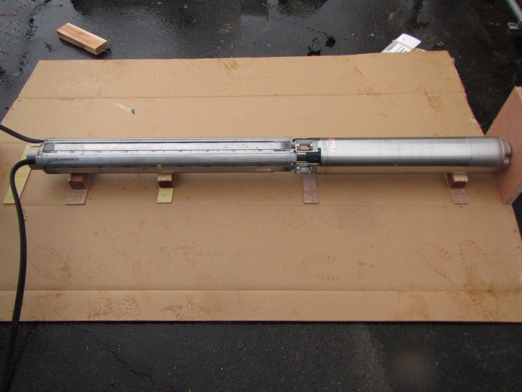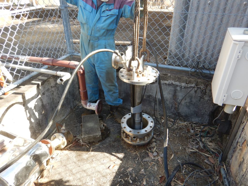 深井戸用水中ポンプの取替工事にあたって、100m以上深い位置に設置してあるポンプを引き上げ、取替を行うため、充分安全に考慮した上で作業を行い、問題無く終える事が出来ました。