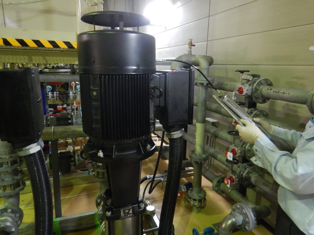 立型多段渦巻きポンプ以外にもこちらの施設では送風機・定圧弁・自動ストレーナー等の機器の点検をしており、弊社では水・熱・空気に関する様々な機器の選定・施工・メンテナンスをさせて頂いています。