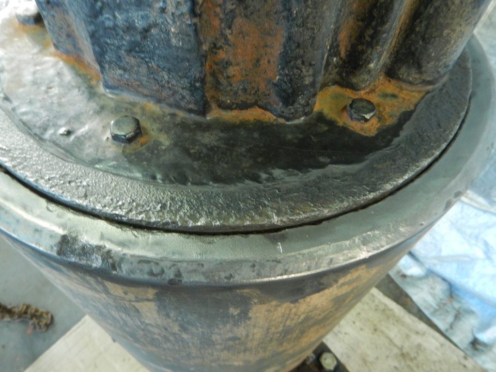 汚水ポンプ 上部ブラケット繋ぎ目補修前