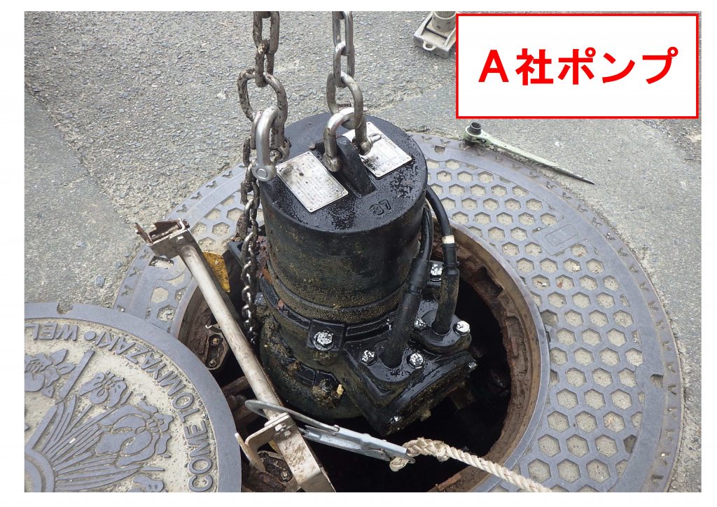 写真はポンプメーカーA社⇒ポンプメーカーB社へ変更したものです。(モータ出力、口径は同じ)