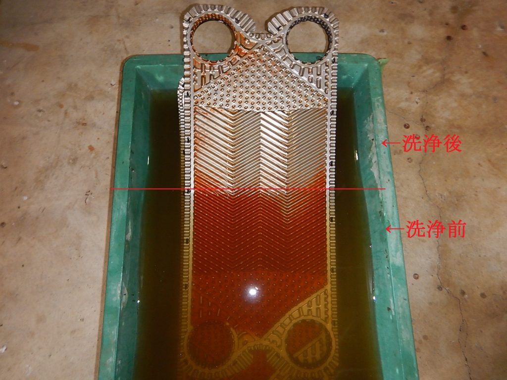 メンテナンスの内容は使用年数や流体によって決めていきますが今回はプレートの薬品洗浄とガスケット1式の交換を実施しました。