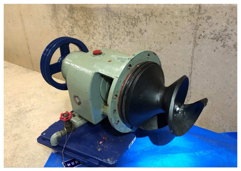 このポンプはスクリューインペラをもつヒドロスタルポンプで、非破壊・無閉塞・高通過の特徴を持っており、下水汚泥やし尿処理の現場で幅広く使用されています。