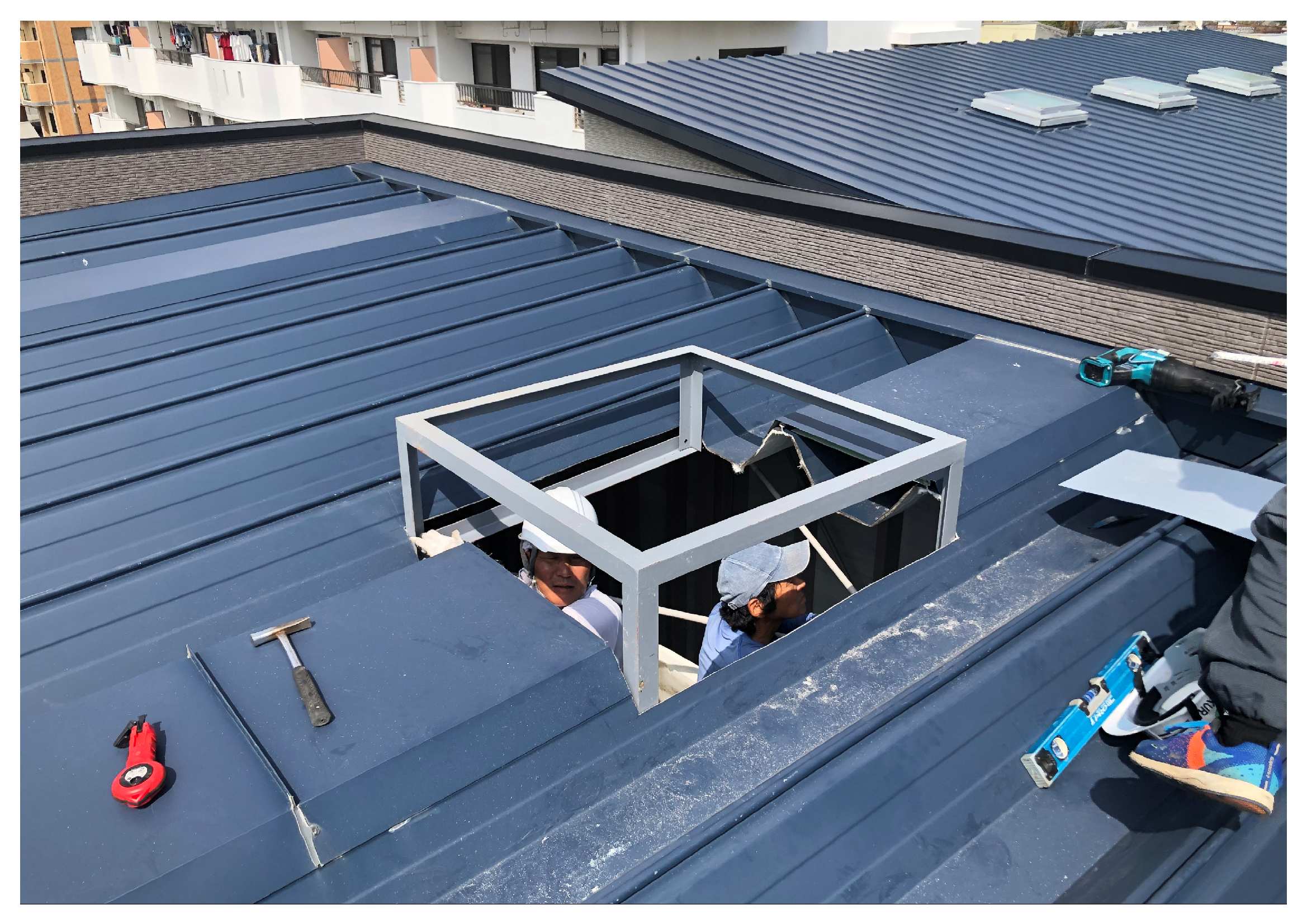 今回、作業環境改善の為、倉庫の天井に㈱鎌倉製作所製ルーフファンを設置致しました。