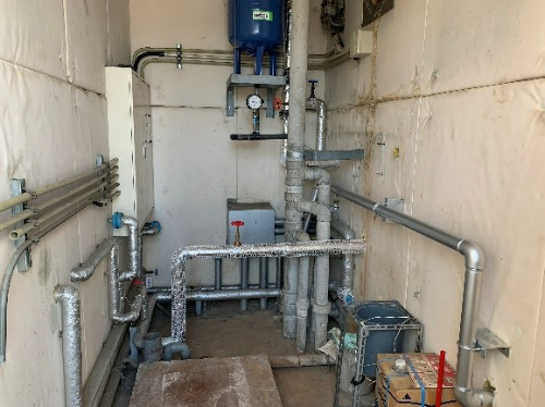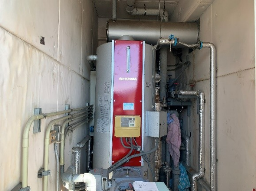 既存の温水ヒータ―は、屋上機械室内に設置されていました。