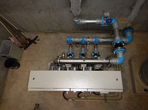 事前に十分な現場調査・採寸を行い、配管の改修を極力少なくするようポンプ架台等の事前準備を行いました。