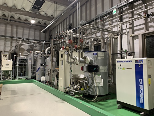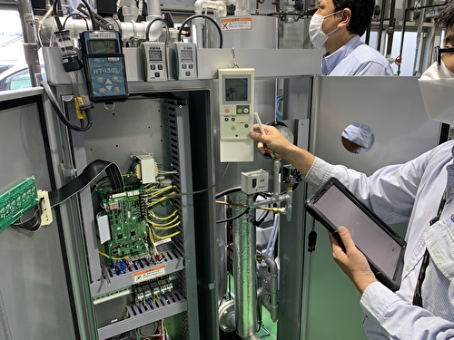 本社トレーニングセンターを利用して、ガス焚き蒸気ボイラーの燃焼調整や安全装置の点検方法、試運転の手順や内部設定調整をメーカー様のご協力の元、実施しました。