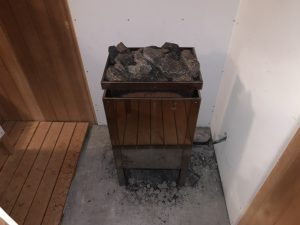 ・熱くなった石の上に水をかけ蒸気を発生させるフィンランド式サウナ
