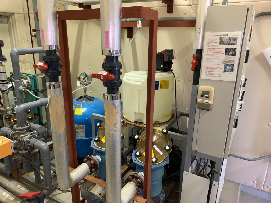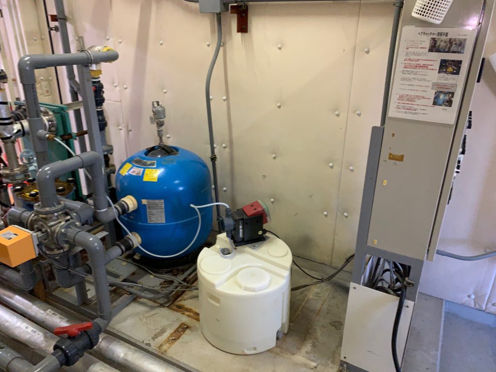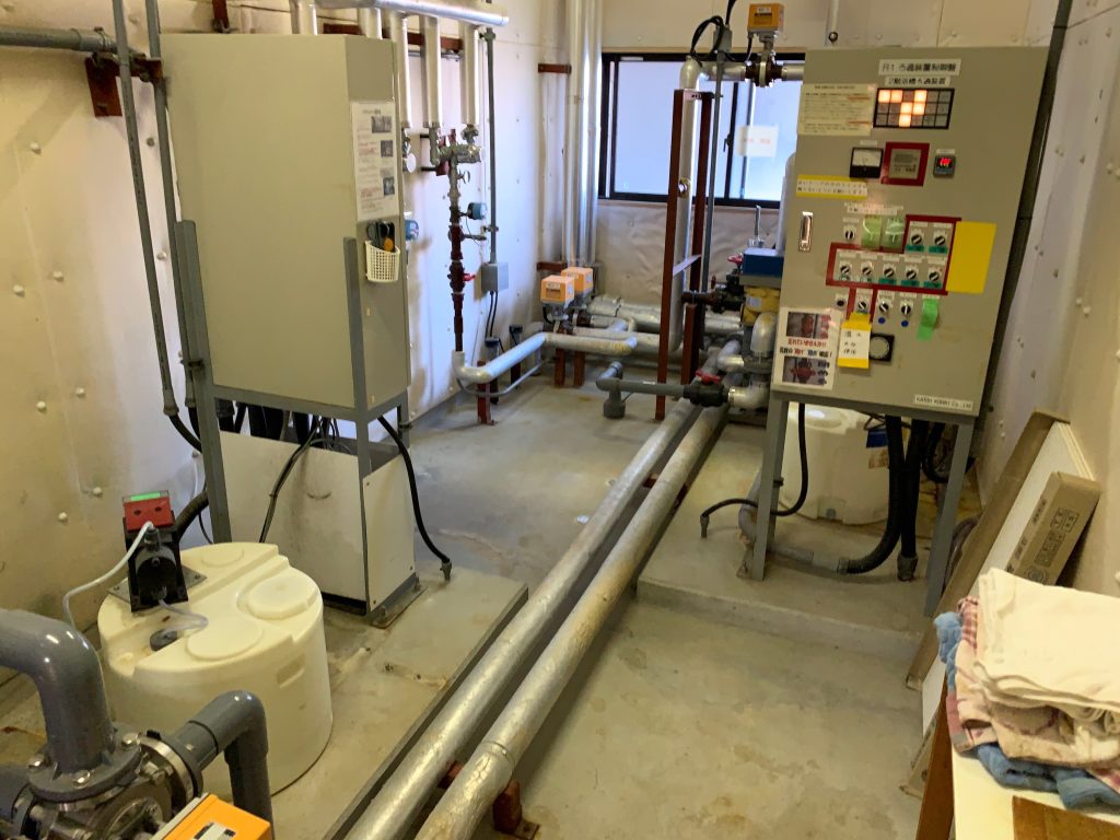 今回は、とある施設様で浴槽の改修工事に伴い、機械室内で不使用となり放置されていた機器の撤去を行いましたのでご紹介させて頂きます。