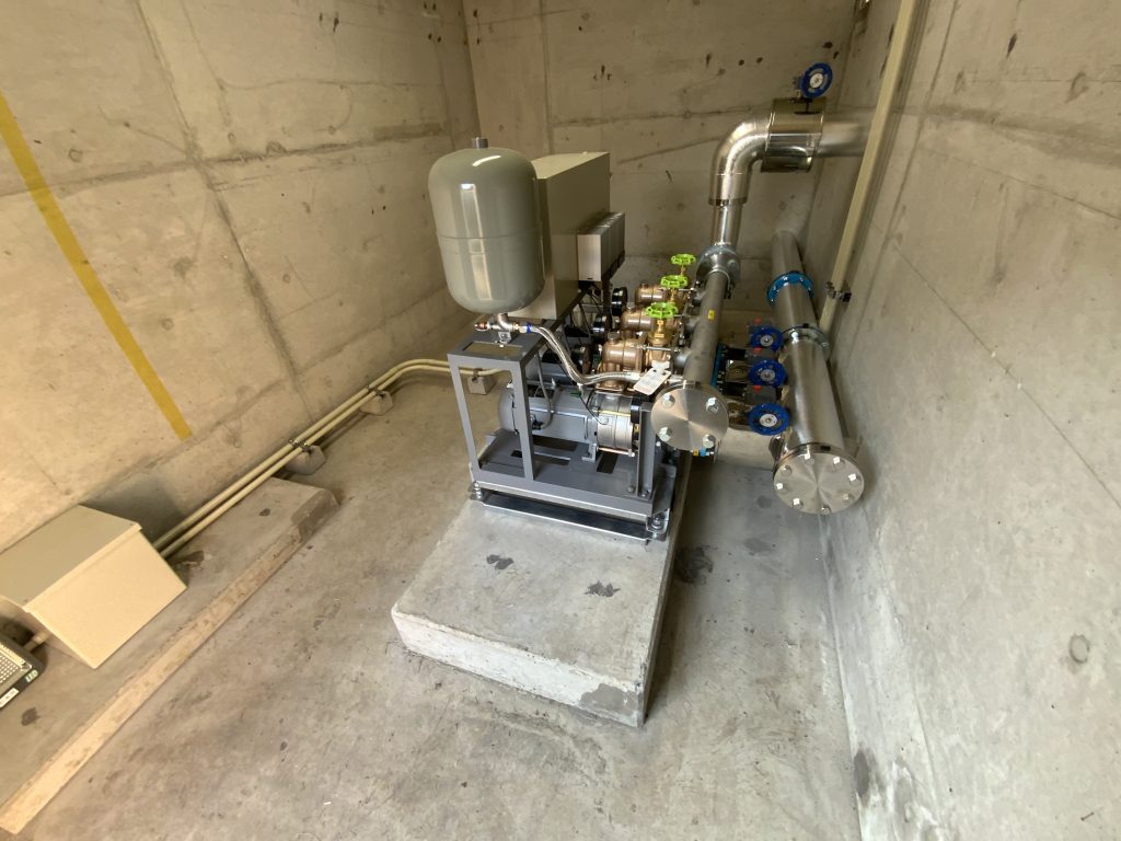お客様の最大の懸念であった「断水時間」を解決するため、当社は既存ポンプを稼働させながら、隣接する別の建屋(使用されなくなった旧ブロワ室)に新ユニットを設置し、最後に配管を切り替える工事計画を提案。これにより、断水を最終工程のわずかな時間に限定できる点を評価いただき、ご依頼をいただきました。
