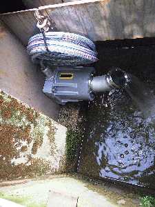 この潜水形電磁流量計はファラデーの電磁誘導の法則を応用した体積流量計で、ある値以上の導電率を有する液体、スラリーの流量測定に適し、上水・工場排水・総量規制管理などの開水路での水流測定、また排水積算体積計として使われています。