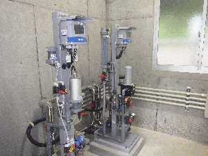 今回点検を行いました現場は、緩速ろ過によってろ過された河川水に薬注ポンプで薬品を注入して殺菌を行い、その後濁度計及び残留塩素計にて濁度及び塩素濃度を管理しています。