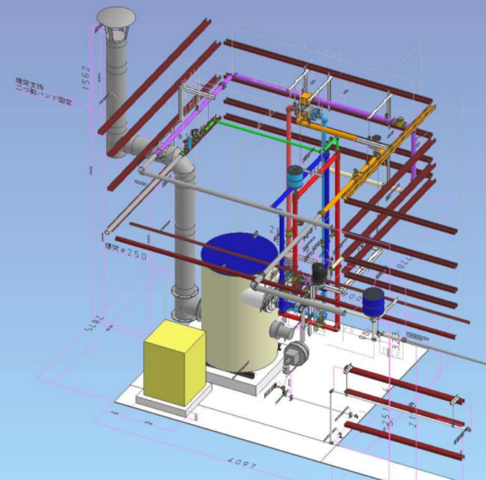 既設配管との整合性を高めるため、3DCADを用いたアイソメ図を作成。現場での干渉を未然に防ぎ、最短期間での円滑な切り替え工事を完遂しました。