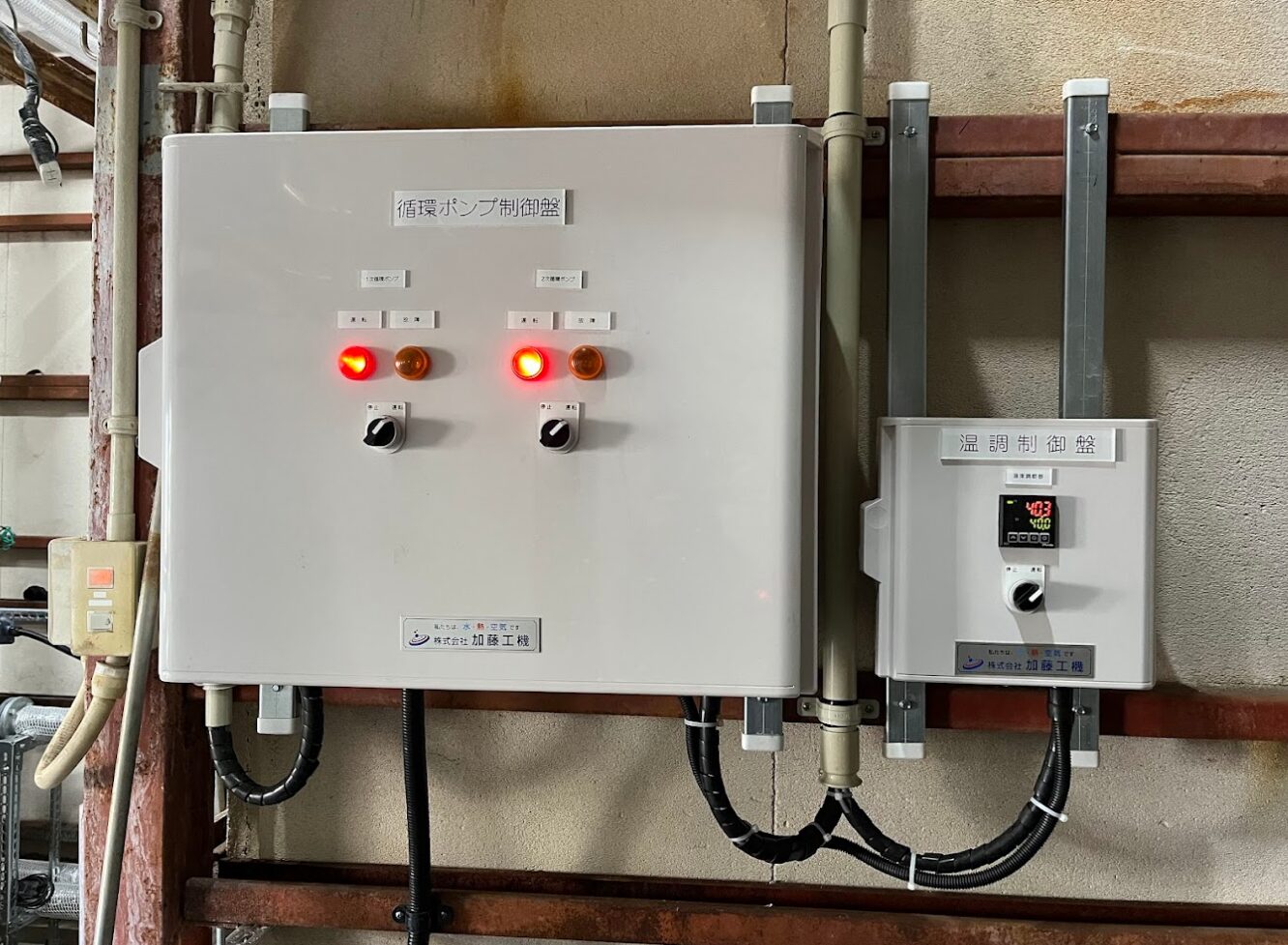●改修範囲:温水ヒーター本体、プレート式熱交換器、循環ポンプ、電動比例制御弁システム制御盤、スケール分散剤注入装置